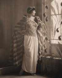 In 1879, Paul Poiret was born in Paris he interned at Jacques Doucet who was a famous couturier of the time. In 1901, he was hired by the famous Worth House of Design. In 1903, he set up his own Atelier of Poiret. In the early 1900’s which was considered one of Poirets influential periods in fashion he was interested in “The Orient” Russian and Cubism. Poiret claimed to have been a Persian prince in a previous life. Significantly, the first Asian-inspired piece he ever designed, while still at Worth, was controversial. A simple Chinese-style cloak called Confucius; it offended the occidental sensibilities of an important client, a Russian princess. To her grand eyes it seemed shockingly simple, the kind of thing a peasant might wear; when Poiret opened his own establishment such mandarin-robe-style cloaks would be best-sellers This had a great impact on Natacha’s own aesthetic which is what she became known for. In 1913, he came to NY and was a clothing designer to Cecille B. Demille. In 1923, Natacha first visited his Atelier which was documented in a Photoplay magazine article. His clothing displayed vibrant colors which managed to capture her personality. In Jan 1924, during another visit to his salon, Rudolph Valentino was quoted as saying that “he is the one costumier in Paris best suited to Natacha’s style, even temperament. We went to one or two other places and looked at their models, but for the most part they were wishy-washy things of pastel shades, with oddments of flowers here and there. Natacha cannot wear that sort of thing. She is not at all the type. She looks best in vivid colors, no one color over another, but all colors that are violent and definite. Scarlet’s, vermilions, strong blues, empathic greens, and loud voiced yellows”. Natacha’s next visit was Aug 1924; she came by his Atelier to pick up some dresses that she had ordered. In 1925, she staged a media event when she traveled from Los Angeles to Paris to pose for photographer James Abbe at famous clothing designer Paul Poiret’s salon. She modeled a pearl-embroidered white velvet gown and a chinchilla cloak, and declared Poiret her favorite couturier. In 1929, Poiret closed his Atelier because his aesthetics conflicted with modernism even though his designs back in the early 1900’s were advanced for the times. In 1944, Paul Poiret died in poverty virtually forgotten. However, through research a new generation has come to appreciate his genius in costume design. In 1927, when Natacha Rambova because a clothing designer in her own right, she did use Paul Poiret as an inspiration but with her own dramatic touch in the clothing that she designed.