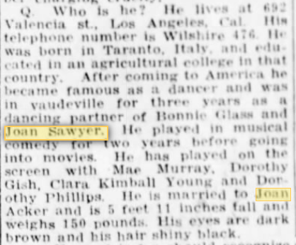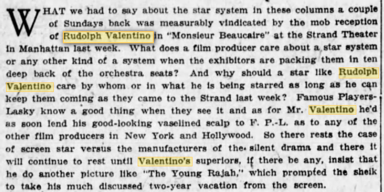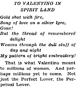 It is obvious who the answer is in the above clipping. This blog is a labor of love for me. It is wonderful to know that there are readers out there that enjoy the items posted here. As a researcher, who conducts research to find articles or items of interest on Rudolph Valentino it is interesting there is still so much more that is undiscovered about him which I will bring to you all in the coming year.