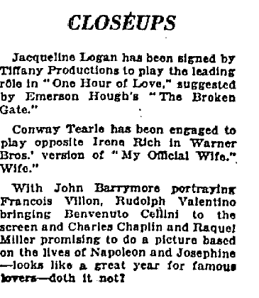 “Once you become a star, you are always a star.” – Mae Murray, protesting when the studio wanted to re-release Delicious Little Devil to cash-in on Rudolph Valentino’s popularity. Mae Murray demanded to retain her star billing.