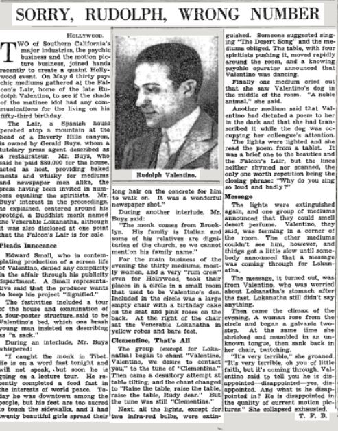 6 May 1945 – Rudolph Valentino 50th Birthday “He Still Wows Them”