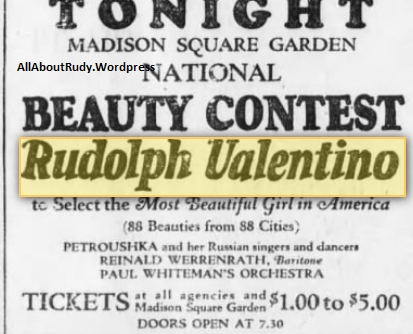 Winifred Hudnut, the former wife of Rudolph Valentino refused to appear in her vaudeville act while on the same program which had a photoplay with her ex-husband as star. As a result her engagement was postponed from 4 Jan to 8 Jan.
