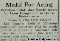 Rudolph Valentino wins Recognition