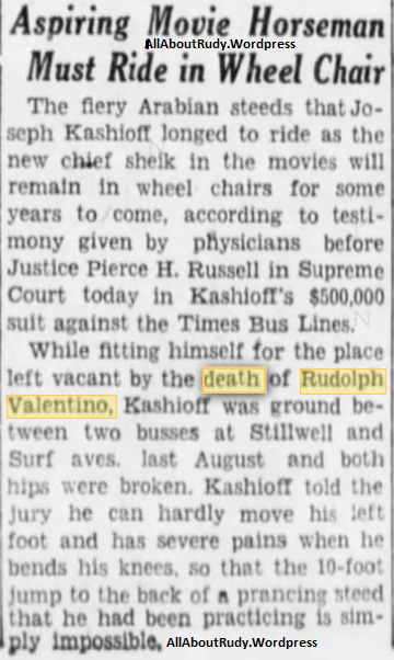 Aug 2016 – How the Death of Rudolph Valentino Affected Me