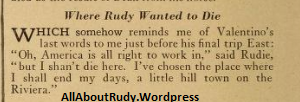 21 Nov 1928 – Mrs. Coppola happier today than I have ever seen her. I asked her why and she told me a strange story of Valentino coming to her last night talking to her. She said his spirit came to her house and knocked on the door. When she let him in, he told her that her baby was happy and not to grieve so much.