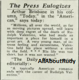 And how many of you children know that it was Peter Dixons story of the passing of Silent Film Star Rudolph Valentino that was the first to go over the wire? All’s fair in getting a store out first, and even Peter’s father admits that there was dirty doing’s at the time. Newspapermen were 30 feet deep around the door of the late star’s hospital room, waiting for the end. When it came Peter Dixon was well outside the last line, and his henchmen whom he planted their passed him the signal and threw the other news hounds into a scrambled heap. Last week, by the way, there was a dinner in Manhattan for the reporters and press photographers who covered Valentino’s funeral. The dinner is an annual affair and the host is Campbell’s Funeral Home the undertaker. We hope the advertisers did their stuff.