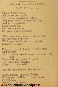 Rudolph Valentino lives again on the screen! A film record of his most intimate private life has been recently discovered by Alberto Valentino the late film star’s brother. It is possible that the memoirs of the movies greatest lover may be released to the public within the next few months.
