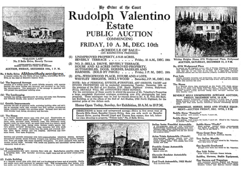 This morning, I came down the hill from Rudolph Valentino’s home Falcon Lair where I had slept in his bedroom, reported to be haunted, I was consumed with an intense longing to meet Natacha Rambova, the woman for whom Valentino had built this crag perched nest. I had heard and read about her meetings with Rudolph Valentino’s spirit. I wanted to hear what she would say about them, I was not at all certain but that I had felt that same spirit during the memorable night in his bedroom. I have said I am neither a believer in the return of the spirit. I say now that were I to spend many hours with Natacha Rambova, I should be a believer. I spent several with her in NYC and I believe her to be as assured of her messages from her departed former husband as you and I are assured of what we have eaten for breakfast each morning. Her faith dates back to the time when Rudolph Valentino discovered he was psychic. Until then she had paid no more attention to the occult than the average man or woman who is spending every moment to develop a career and make a living. The insight into Valentino’s powers came shortly after the death of June Mathis mother. The four were constantly together and the three Natacha, Rudolph and June suffered together a the mothers departing. A woman who had been a longtime friend of Mrs. Jenny Mathis was at the funeral. This was the first time Mr. and Mrs Valentino met her. A few weeks later they received a letter from her. Natacha laughed as she recalled this letter. “It was a wild letter. the woman was afraid we would think her a fool. She said something like this ‘I was sitting down the other day starting to write when my pencil suddenly started to go backwards. It was really embarrasses me to write this to you but when I had finished my hand writing automatically I had to hold the paper before a mirror to read it. It was a message for Rudy.’ The message was from an Italian woman who had been his nurse when he was 8 or 9 years of age. It asked if he remembered certain childhood happenings such as rumbling from the porch backwards. All this time he was reading it, Rudy kept exclaiming my heavens. When he finished reading the letter he was frightened. There were things in that message which no one in this country, not even myself, could possibly have known. I don’t want to know anything about it. I don’t want to get into this sort of thing he kept exclaiming. But curiosity overcame that reluctant feeling which most people have in contemplating messages from departed spirits. Eventually Mr. and Mrs. Valentino sent for this woman to visit them. She would take plain yellow paper (yellow is the most psychic color) and a large soft lead pencil. Understand, she had never received messages until the first one for Rudy. We would sit around and talk at random. She would join in the conversation merely holding the pencil. When the writings began she kept right on talking. She made absolutely no effort with the pencil. The first communication was from Jenny Mathis and it was advice for Rudy. As amazed as we were, we could not help but believe it. Throughout the litigation with Famous Pictures we were told four and five days ahead of time what was going to happen. It was as though we were given a warning. And if we, had only followed the advice given by the automatic writings we would have been saved much trouble. But we didn’t pay too much attention to the advice. We had seen too many people go crazy about this sort of thing we were determined to keep our common sense with it all. Then Rudy discovered that he could receive messages through the pencil. I never could. I am not mediumistic. Of course there were other happenings which proved that Rudy was psychic. His handling of animals was nothing short of remarkable. One time we had a pet lion. We took it as a very young cub and it grew as devoted to Rudy as any dog could possibly be. When it was four months old it discovered a way to unlatch the windows and slip out for an outing. The Hollywood neighbors didn’t seem to appreciate these wanderings, so we were forced to send it to the zoo. Some months later we were leaving for San Francisco and went to the zoo to say goodbye. The keeper warned us to keep away from our pet as he had turned