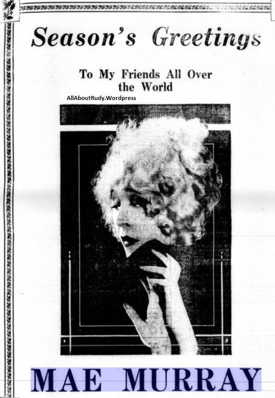 Winifred Hudnut. daughter of Richard Hudnut. the perfume magnate, was his choice. She was a girl of mystery, for it was not known generally that the Hudnut’s had a daughter. The girl had appeared in the films as Natacha Rambova, a protégé of Nazimova, in whose company Valentino had been featured. They were wed In Mexicali, Mexico, at a party, with the municipal band and a reception by the local government. Then came a crash that quite drowned the sonorous music, for it was learned that Rodolph’s divorce would not be permanent until next January and he was promptly arrested for bigamy and jailed when he returned to Los Angeles. Friends supplied bail and he was finally extricated but legally declared unwed. He was freed only on condition that he restrain himself and live apart from his quasi-wife until the decree became permanent and this he promised. Meanwhile, Miss Hudnut’s history was investigated and It came out that she was merely an adopted daughter of the Hudnuts; that she was really Winifred De Wolfe, a relative of Elsie De Wolfe, and that she had mysteriously disappeared eight years ago, to be discovered in the company of Theodore Kosloff, the Russian dancer, under the name of Vera Fredow. The bridegroom remained in Los Angeles, the bride hastened to New York and Jean Acker, near-wife, laughed generously, and said “My marriage was a romantic tragedy of the silver screen. Our happiness has been shattered, but I still admire Rodolph. I can’t say that I love him, but he Is a wonderful actor. He and Miss Hudnut have my sympathy and I bear them no malice. As for me I’m trying to forget.” But Valentino assorted proudly last week that Winifred Hudnut would be his forever despite the law, and he added “I’m going to Paris In March, when I have my final decree of divorce. My wife? If she is my wife will leave New York with her parents for Nice soon. When we meet again. It will be in Paris, and we will be married. “Then we will get married in every State of the Union, if necessary. After that, we will settle down in Hollywood in the home that I have provided for my bride the home that she has never occupied. Of course, my wife will continue with her art work. She has designed many of the costumes in my recent pictures. A woman has the right to a career outside of marriage but she cannot devote herself to a career and to marriage successfully and at the same time.” And In the meantime, Hollywood Is awaiting the sound of the next marital cataclysm in its midst for there always seems to be one ready for the spark that precedes the explosion.
