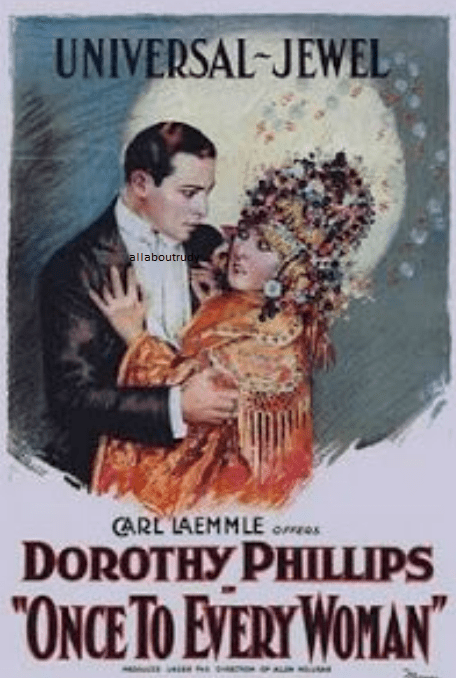 Initially released 6 Sep 1920 and re-released again in 1922, “Once to Every Woman” is about a selfish spoiled young woman named Aurora Meredith. Aurora has become well-known locally in her small village as having a wonderful singing voice. One day, a wealthy woman has decided to take her under the wing and sponsor her continued music studies in Italy. After three years, on the continent, her sponsor dies, and she is without funds to complete her final year. Desperate Aurora accepts financial aid from an unknown young Italian man named Juliantimo. A bargain was struck and in lieu of payment she will marry him. When Aurora starts to gain fame and recognition, she starts to avoid Juliantimo. Soon with an offer to appear in New York City she immediate accepts and leaves to avoid the young Italian. During a singing appearance she meets the Duke of Devonshire who is besotted with her. The duke asks for her hand in marriage and arranges for her to have a leading role in an upcoming opera.