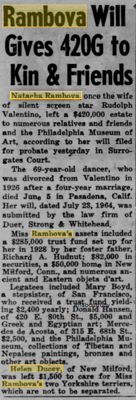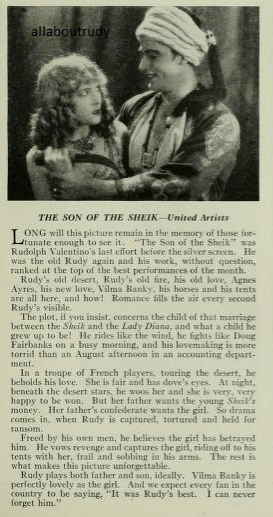 A Rudolph Valentino autograph recently was sold for $75.00. A mechanics weekly salary will buy Rudolph Valentino’s $18,000 Isotta Town Car, now dusting on a used automobile lot. Nina Wilcox Putnam has a Voisin formerly owned by Valentino.