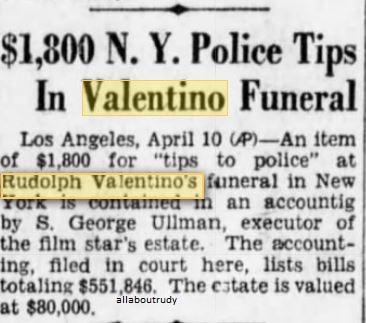 18 Aug 1933 – What Rudolph Valentino Items are Worth