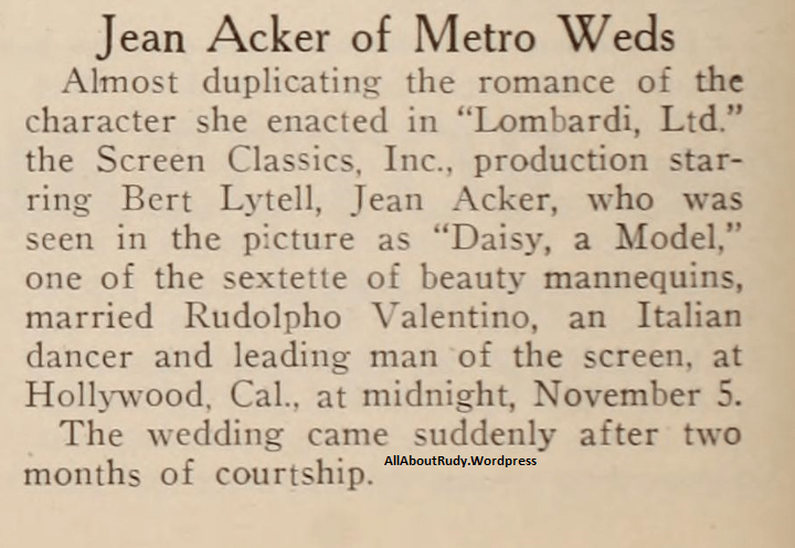 Between movie pictures Rudolf Valentino paid a visit to Chicago, and proved that it was possible for even such a nagnet as he has become to the feminine half of the U.S.A. to walk abroad unmolested and unchallenged. Rudy made a bet that he would even enter a theathre without being recognised and WON. But he had thoughtfully provided himself with a pair of horn-rimmed spectacles and a beautiful beard, and not even the people sitting next to him knew that the gentleman they hailed as a perfect beaver was the actor so enthusiastically worshipped as “The Sheik”.