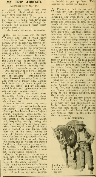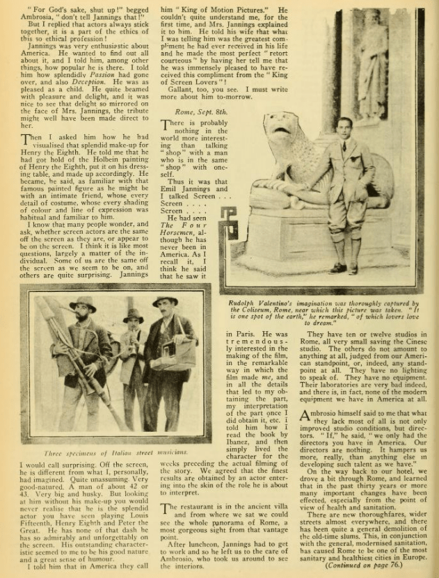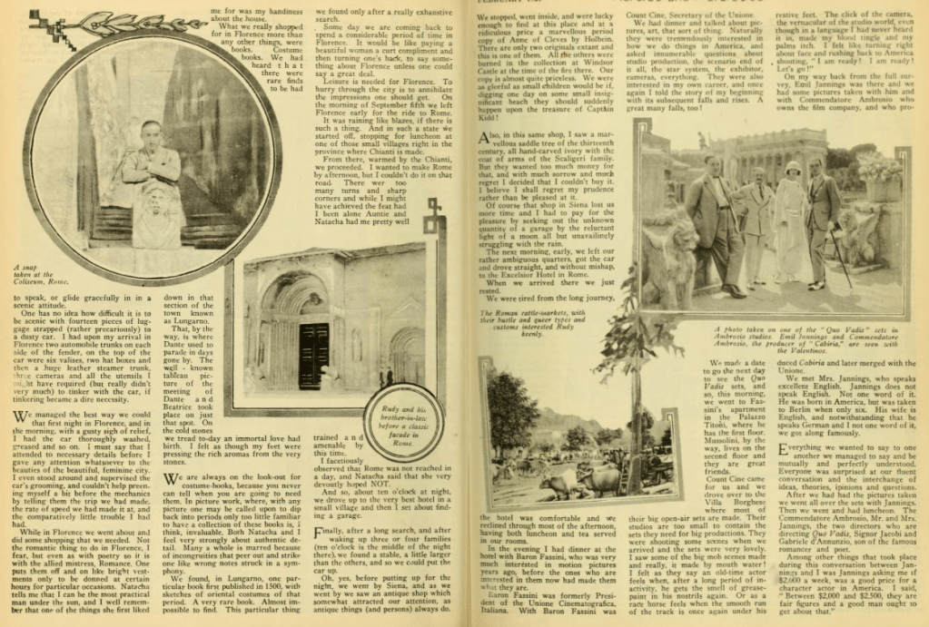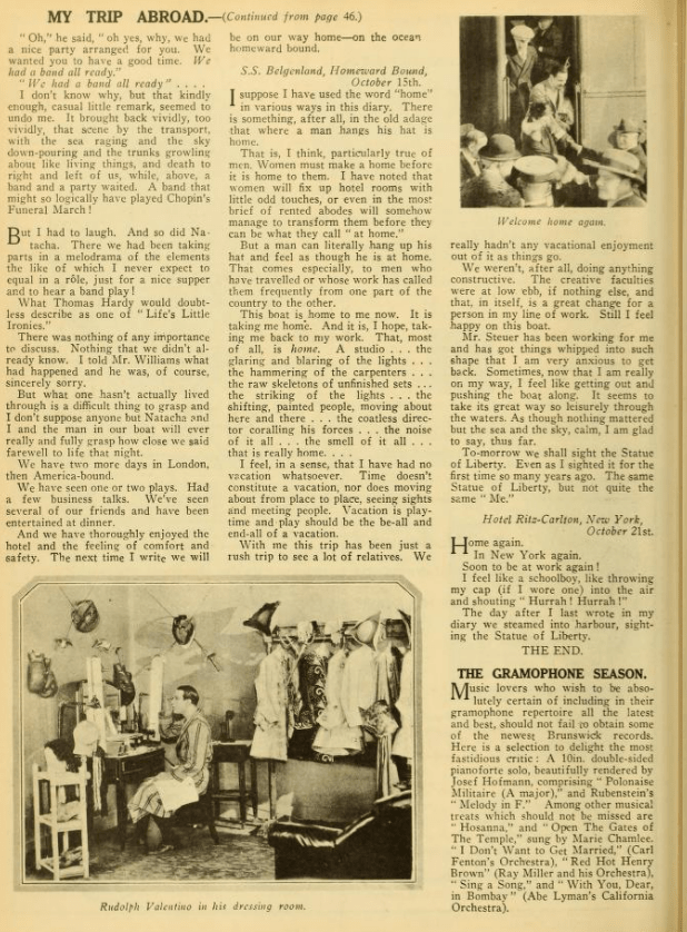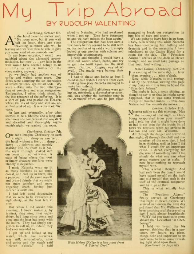 Why on earth, when they are filming a movie based on a book a movie studio bought the rights too don’t they keep it exactly like the book? I have seen “The Sheik” and I think it is so terribly disappointing to film fans when they go to see a favourite novel screened and find it hardly recognizable. Also, why cast Valentino and Agnes Ayres in “The Sheik”? both are favourites of mine, but they did not put enough ‘pep’ into their respective roles.