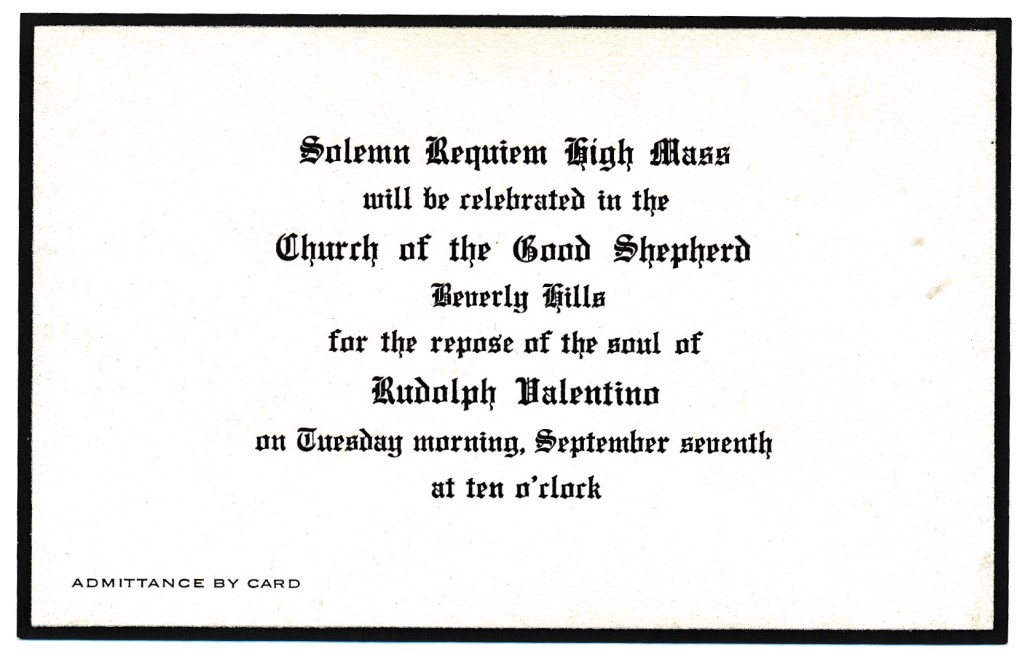 As a reminder, the Annual Valentino Memorial Service is once again upon us. This tasteful event is a celebration of the memory of silent film actor Rudolph Valentino. Each year, is a program honoring his life and legacy.