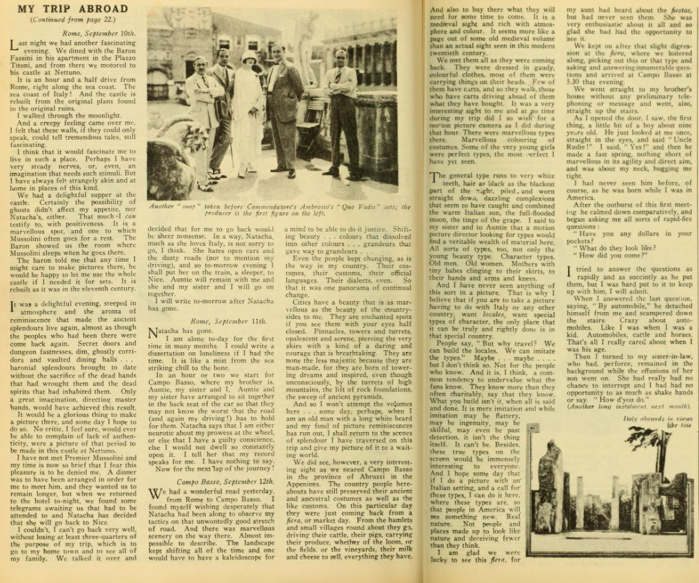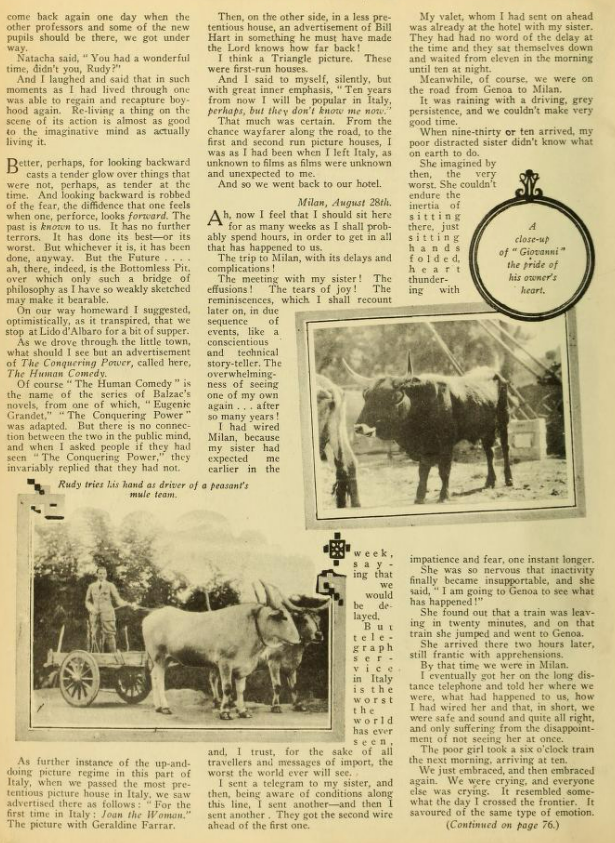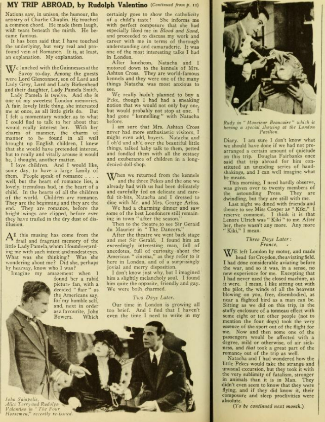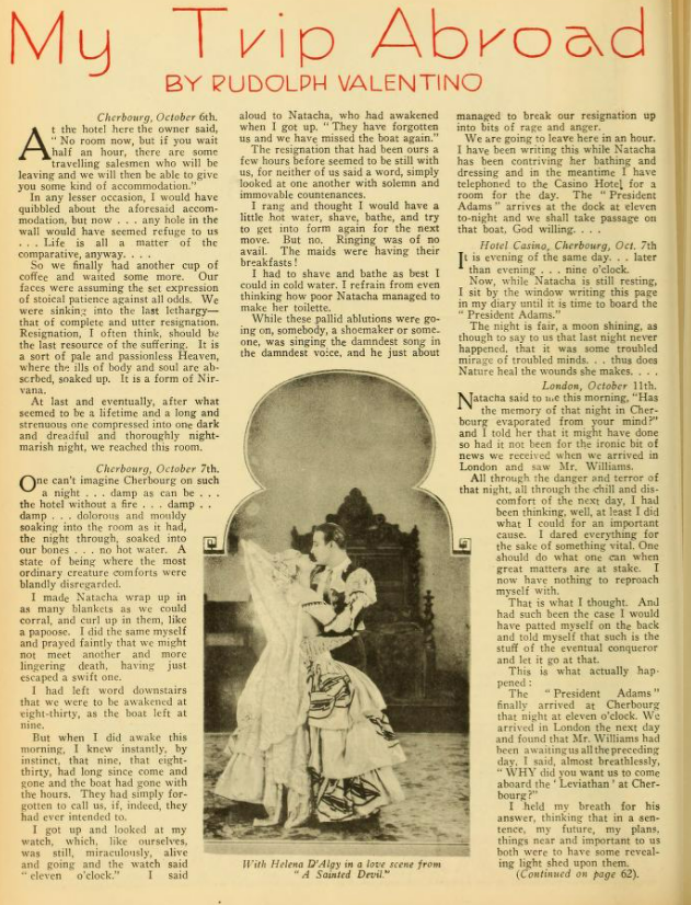 Why on earth, when they are filming a movie based on a book a movie studio bought the rights too don’t they keep it exactly like the book? I have seen “The Sheik” and I think it is so terribly disappointing to film fans when they go to see a favourite novel screened and find it hardly recognizable. Also, why cast Valentino and Agnes Ayres in “The Sheik”? both are favourites of mine, but they did not put enough ‘pep’ into their respective roles.