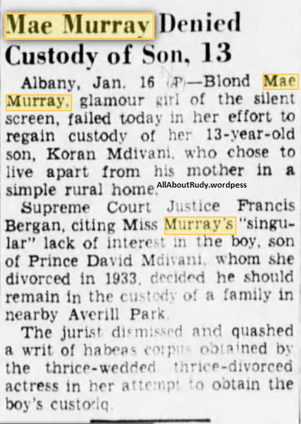 16 Jan 1940 – Mae Murray Denied Custody