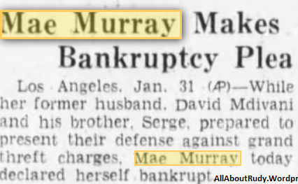 31 Jan 1934 – Former Silent Film Star Bankrupt