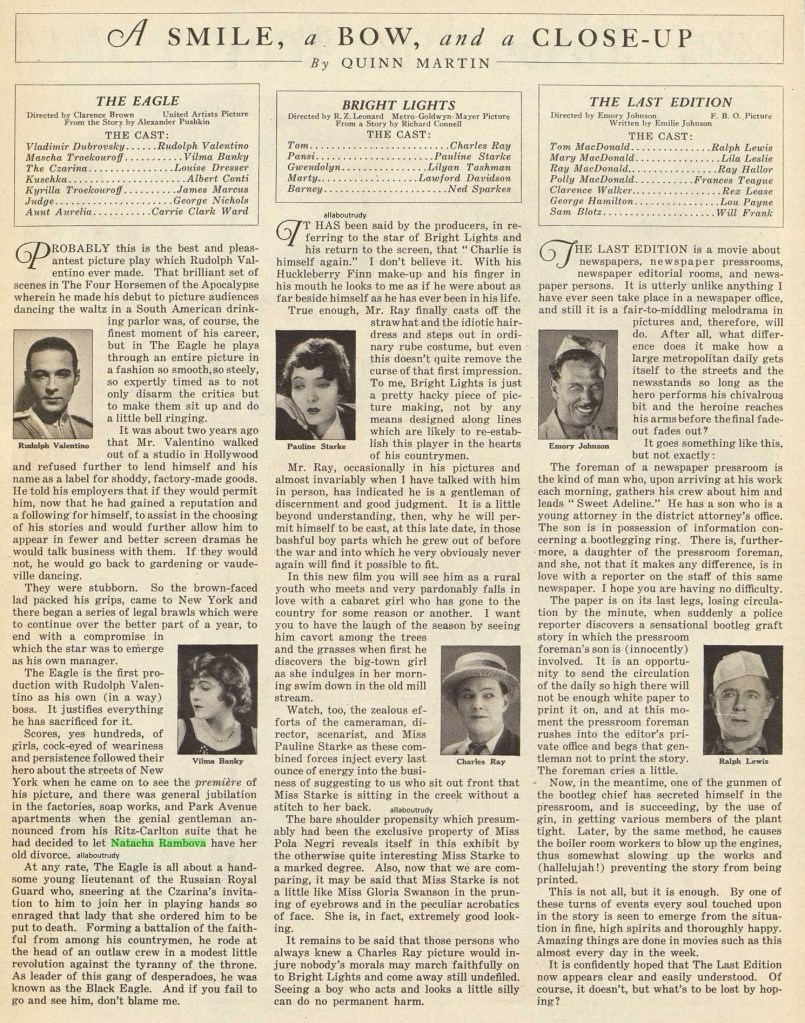 Joan Sawyer in “shepherdess” costume, dancing with her partner a modernized version of the stately minuet used to believe in fairies,” as Chauncey Olcott used to sing—but Joan Sawyer sings it in the present tense! Joan Sawyer believes in fairies particularly, and in elfin sprites, wood nymphs and the whole list of storybook people generally and with very good reason, too. Here’s what believing in fairies did for Joan Sawyer: Started her in as a stenographer for a plumber at seven dollars a week, and in five years put her in touch with the world of modern dances—not the Pavlowa kind of dances, mind you, or the Adelaide Genee type—but modern dances, the kind that turn you into a millionaire overnight, as they have the Castles. New York society dances, yes; hut when it sits down to rest and wipe the perspiration from its brow, then enter Joan Sawyer—Joan Sawyer, “Do you over-graceful, making you think of the fountain of youth—Joan Sawyer, who is turning the modern dances into classics, who puts grace and rhythm into the fox trot and turns a canter into an elusive movement suggestive of iambic verse”. That’s the way they try to describe it. No leader of the “400″ in New York could think of giving a nail unless Joan Sawyer appeared during the evening. Not long ago she opened the famous fashion fete with a grace not entirely natural to the fox trot. In a Kurzman gown which was almost a crinoline without the hoop, she danced so beautifully that not a finger moved in the big hall. It was such dancing as no mere novice could aspire to. New York has gone mad about Joan Sawyer. There is a certain piquant charm which is not eccentricity about her. She shows that the modern dances can be made as graceful as the older ones. And New York is trying to prove it after her. That’s why pretty Joan Sawyer sits in the lap of fortune- now and does homage to the fairies that she believes in. Another show came to town and Jane applied for a position in the chorus. A young man in the company who was a good dancer wrote some “patters” and they went into vaudeville and made a hit in the West and South with their dancing. Where upon Joan went to New York. She had a nickel in her purse when she got there, and only by odd bits of work here and there such as singing at department store music counters was she able to exist. It took her four months to land a position in a show at Columbus Circle. The show lasted in two weeks; Joan Sawyer was again out of a job. Maurice is looking for a dancing partner,” someone told her. Without a word Joan with tense lips went to a telephone and called up Louis Martin’s (Mar-tan’s, please, with the accent on the last syllable), and asked for Maurice’s phone number. Instead of giving her that they connected her with the office of the famous dancer direct. “This is Maurice,” came a voice. The first step in the Argentine tango. And then Joan Sawyer said simply that she had heard he needed a partner. Maurice told her to call the next day. So that night she took the elevator boy at the place where she stayed to be her escort to Martin’s. She had, of course, to see Maurice dance. The famous artist after a brilliant performance which won much applause asked if there was any lady present who would like to dance with him. Joan Sawyer’s heart was in her mouth. Timidly she stood up and came forward. Her good fairy was urging her. They hadn’t danced a minute where Maurice asked: “Do you happen by any chance to work for a living?” “I am the girl who called you up today.” said Joan. Maurice was so surprised that he almost missed a step. “You’ll do,” he said. This happened two years ago. Today Joan Sawyer Is known all over America and fame and fortune smile upon her. Joan Sawyer, charming dancer, who rose from plumber’s stenographer to fame and riches through artistic performance of modern dances. She was a very sentimental young girl and had devoted much time and tender thought to the home decorations. Her surprise may he imagined when she came down stairs one morning and found the decorations moved around, and all the mistletoe hanging in the windows. “Say, sister.” exclaimed her little brother, “you’ve had that mistletoe hanging up for nearly a week, and you haven’t had a single customer. You’re not up-to-date. What’ you want to do is to advertise