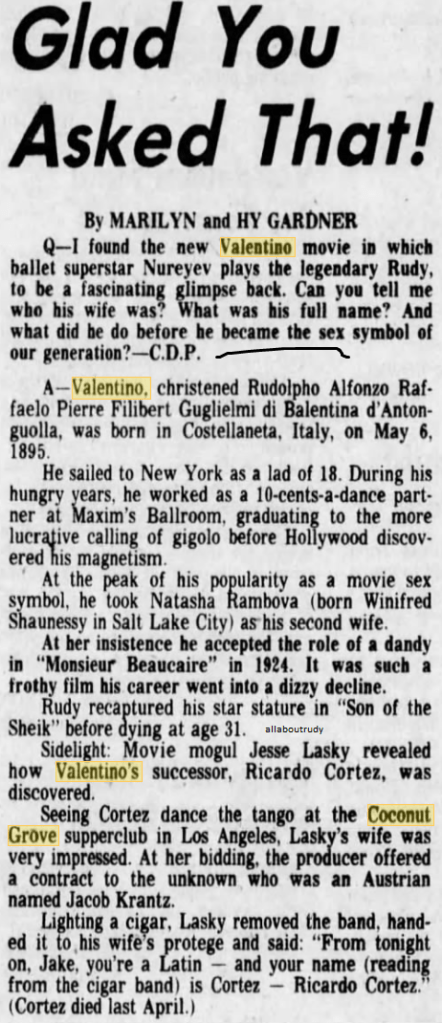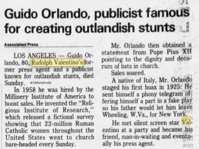 27 May 1927 – Many Seem to Believe Valentino Lives, Judging by Letters Addressed to Him