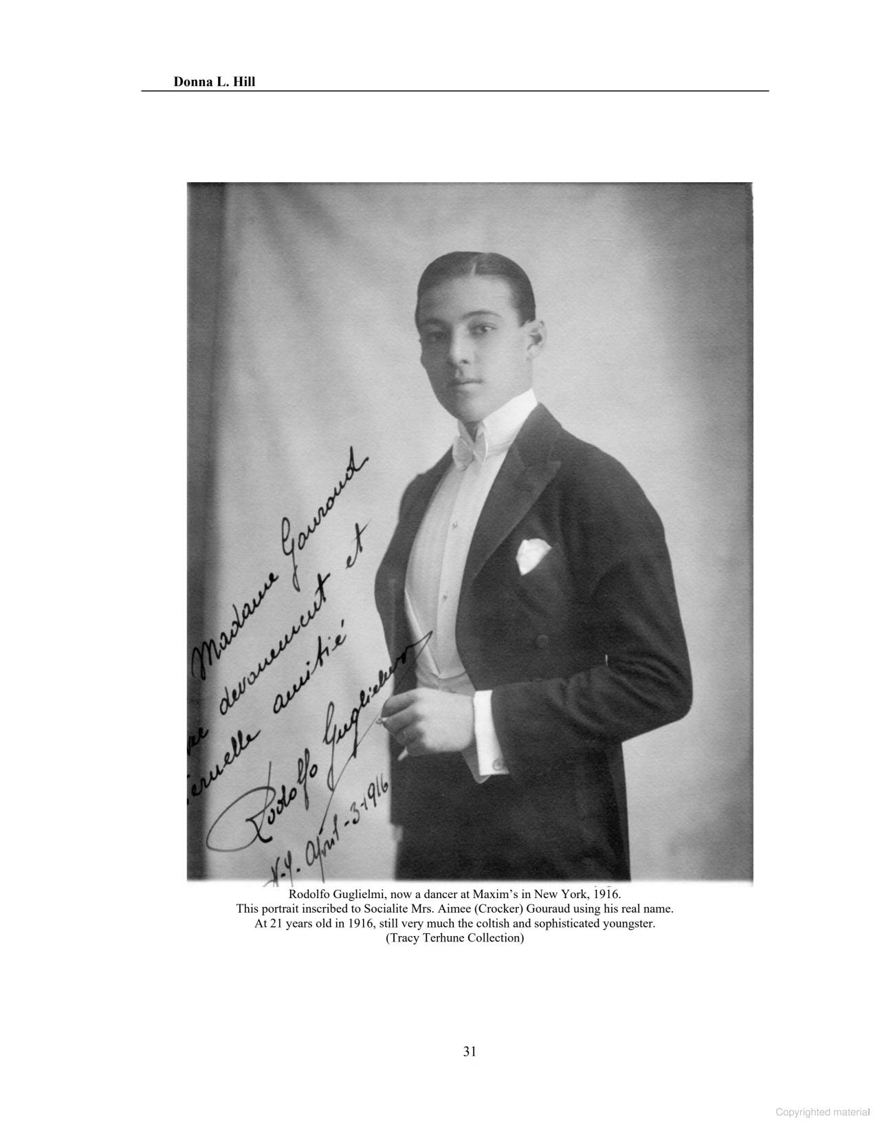 Aimee Crocker was born in 1864, Sacramento, California to parents who came from privileged backgrounds and scandalous headlines seemed to be an inherited trait. When Aimee became older, she seemed to attract attention wherever she went. When New York City became the epic center for the rich and powerful our young lady became a true socialite. She was young, rich, two dangerous combinations. A true Gilded Age beauty in New York City high society. She socialized with the upper 400 hundred and was friends with society matrons of the day such as Mamie Fish, Caroline Webster Schermerhorn, Tessie Oelrich and Alva Vanderbilt Belmont. However, the Gilded Age was struggling to survive and yet Aimee somehow managed to make local gossip headlines with her antics. Aimee had no need to worry about money. However, for poor immigrants newly arrived to Ellis Island for a chance at the American dream. One of these immigrants eventually became famous in his own right but success would take time for Rudolph Valentino to achieve. As a young immigrant who could not speak English, he realized that in order to become successful he needed to make connections, get a job, learn English and survive in anyway he could. A born survivor and dreamer, he found his way to work at the world-famous Maxim’s de Paris. This restaurant was expensive and everything was done on a grand scale that they were noted for. Julius Keller, proprietor of Maxims knew that rich Americans savored a European Continental style atmosphere, and they introduced a ballroom that offered dancing with paid dancers and music. To attract a certain clientele, it was important to hire young and handsome men who knew how to dance and treat and cater to a paying public. Eventually Valentino found work there and often gave “private dance lessons” and soon became a local favourite. One of these such fans Aimee would become known for participating in private dance lessons in one of the rooms set aside. Eventually she would let it publicly be known he was her protégé’. However, as time went by Valentino would make his way to California and the rest is a true Hollywood story.