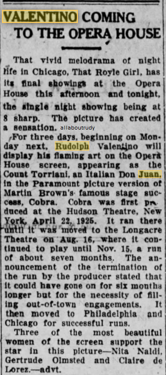 Although it’s always a poignant moment when one stops to reflect on 23 Aug when Rudolph Valentino passed from this mortal world and has remained in our thoughts ever since.