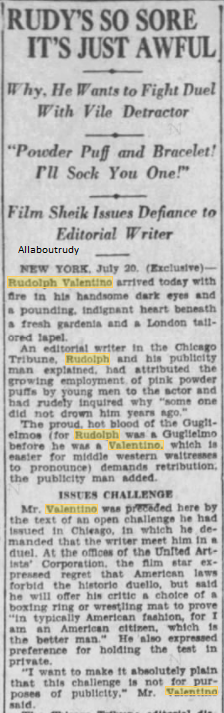 There are three sad months out of the calendar year. July was when Rudolph Valentino started to feel ill. August was when his health started to decline. He had an Italians superstition regarding going to a doctor. Inspite of maintaining a healthy lifestyle minus the smoking, drinking and eating, he died. September was when he was buried.