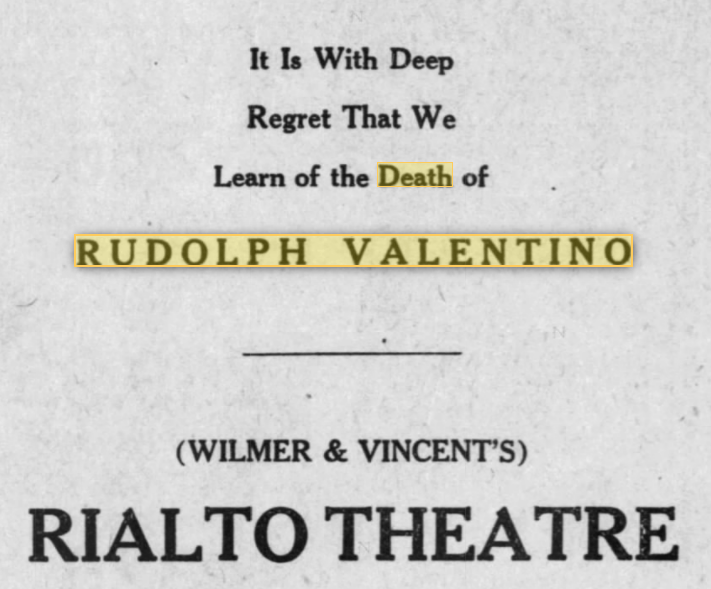 Millions all over the world as far as moving pictures learned with deep regret his passing. A very young man of intense feeling and earnestness, Rudy held his place, without a noted rival in his field. He came to this melting pot country seeking a better way of life. While his early struggles were known he made his way by hard work and talent that showed the world on the silver screen just how remarkable he truly is. Life on this mortal earth was brief but it was not wasted.