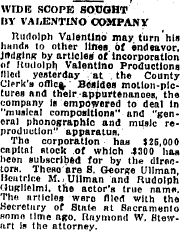 Without a Famous Players- Laskey Corporation with its vast facilities and ample resources it is highly doubtful if Valentino could have risen to international eminence in such a brief space of time.