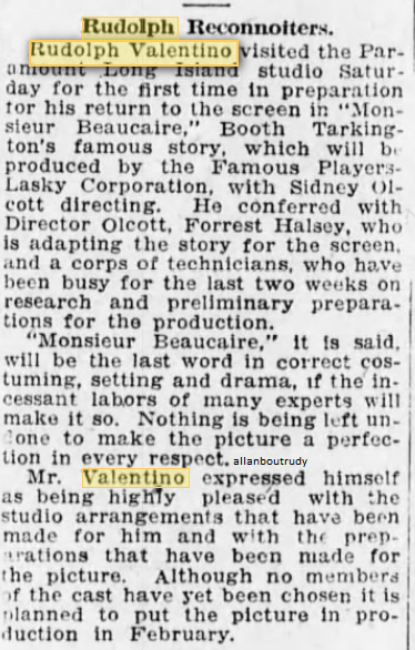 Without a Rudolph Valentino it is doubtful if Mr. Zukor could have grossed such enormous sums on those pictures. Plus the insurance money certainly helped out now didn’t it.