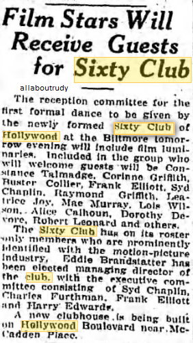 31 Mar 1925 – Newly Formed Hollywood’s Sixty Club