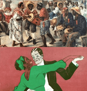 In 2001, during the global pandemic, there was a virtual lecture given by the NY Adventures Club titled “Dawn of Tango”, taught by Pierre Baston, tango teacher and lecturer. I enjoy listening to vintage Tango Music and watching the Tango. The lecture was the investigation into the black roots and evolution of tango. An analysis of today’s tango movements and how they are directly attributed to African dance and music. I was hoping he would talk about the tango movement in Europe. So, I sent Mr. Baston, an email and a link to a YouTube video that shows Rudolph Valentino in the tango scene in “The Four Horsemen of the Apocalypse”. I asked the question “This was the beginning of the movie career of Rudolph Valentino. He was taught tango and apache by Juan Duval in Paris. My question is what are your thoughts about this dance scene? The following was Mr. Baston’s answer “I enjoyed the performance by Valentino in the Four Horseman. I note that he uses the same grip with his left hand gently holding the fingers of his partner’s right hand in the manner that the great Argentine tango master ‘El Cachafaz’ was famous for. It was considered a sign of respect for the woman’s daintiness that contrasted with the more domineering palm-to-palm grip with which a leader could push or pull his follower around. They execute plenty of quebradas in genuine Argentine style–bending the knees deeply and leaning forward or back in order to bring their bodies into closer contact. The move in which he throws her up in the air from one side to the other is strictly a show move invented for the camera, and I suspect that it comes from his apache experience, since you told me that Valentino danced apache. It was a staged tango dinner show with spectacular choreographed moves that first hooked me on tango. But stage tango and social tango are very different. This performance has strong elements of both”.