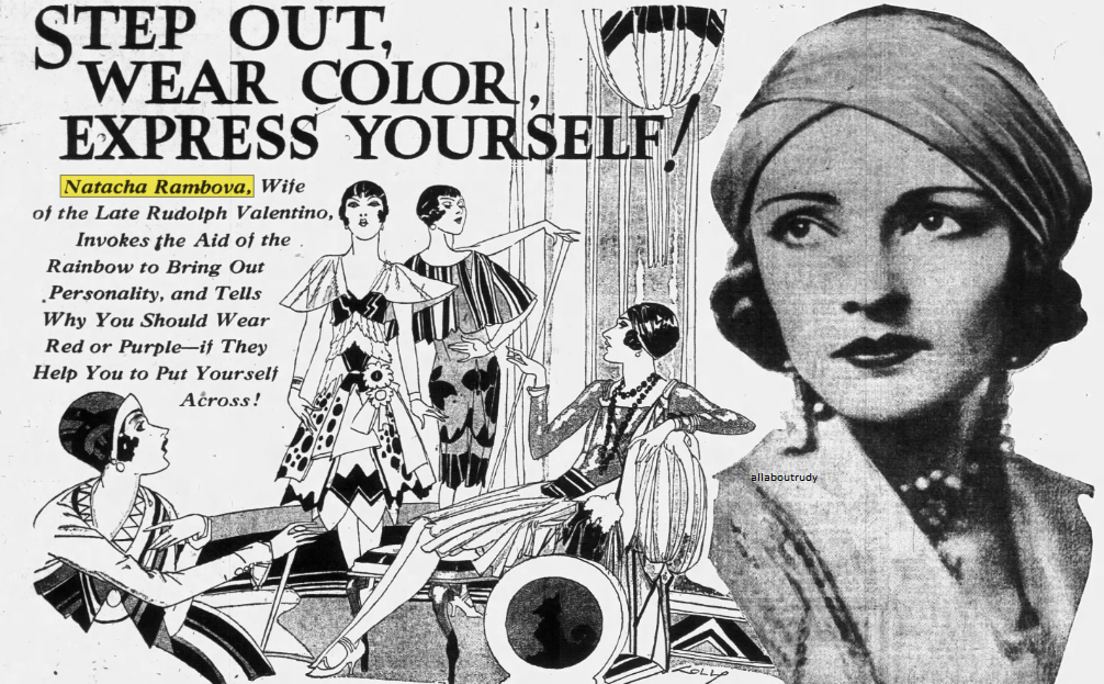Natacha Rambova, former wife of Silent Film Star Rudolph Valentino died on 5 June 1966 in Pasadena, California. Today, her will went into probate in New York and her estate was valued at $367,000. Miss Rambova lived in New Milford Conneticut in her later years. However, her immediate family moved her out to California due to ill health. She was the adopted daughter of perfume mogul Richard Hudnut to whom her mother was married to. The will lists 25 specific bequests, left a $200 monthly lifetime pension to her half-sister Mrs. Mary Boyd, San Francisco and the balance of the estate went to 11 other relatives. One personal bequest left her entire library and collection of Tibetian and Nepalese Paintings and Bronzes to the Philadelphia Museum of Art.