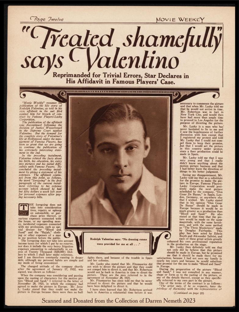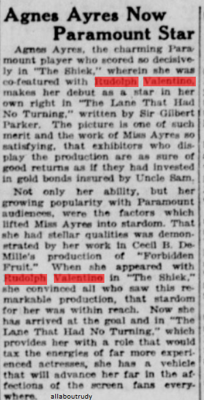 Here is the first exclusive article about Frances Marion and Rudolph Valentino