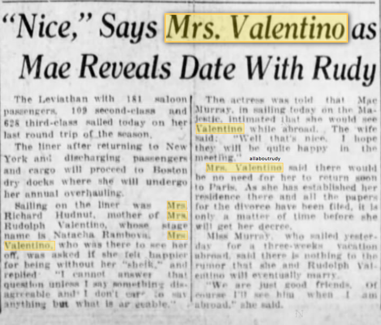 Tags: Mae Murray, Mrs. Richard Hudnut, Mrs. Rudolph Valentino, Natacha Rambova, Rudolph Valentino, USS Leviathan