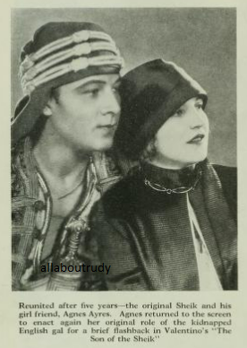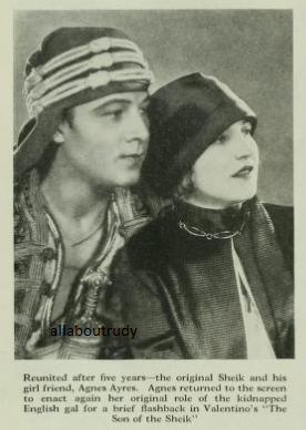 Agnes Ayres, 42 who rocketed to movie stardom in the silent screen days, retired to cinematic sidelines when the talkie era started and later made an unsuccessful comeback attempt died Christmas Day of a cerebral hemorrhage. Miss Ayres, a film contemporary of Gloria Swanson and starred opposite of Rudolph Valentino in “The Sheik” had been in failing health for some time. She was stricken suddenly on Christmas Eve and died later in a hospital without regaining consciousness. Surviving is a daughter Maria now reported to be in Mexico City with her father Manuel Reachi from whom the actress was divorced in 1927.