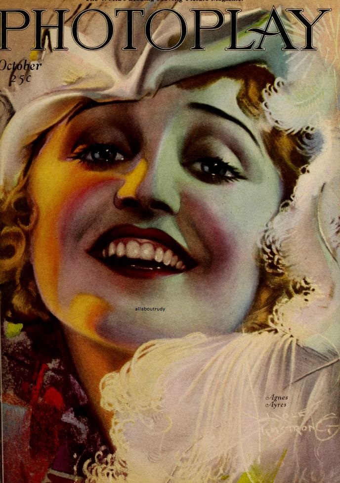 Agnes Ayres has no story of hardships. She never trouped with a road show to gain, by hard knocks and brutal treatment of the elements, experience in real life that would teach her how portray dramatic characters on the stage. The secret of her success is a pretty face. The story of how Agnes Ayres became a movie star renews hope in the breast of every girl with movie aspirations, despite the warnings of earnest directors and producers who warn away from Hollywood thousands of film-struck young women every year. Agnes Henkle was a typical small-town girl, with long glittering golden hair and languorous brown eyes with a greenish tinge. The Henkle Family lived at Carbondale, Illinois when Agnes arrived. Chicago was the logical place for the education of the young daughter. So, the family moved. One of earliest of the motion pictures companies was the old Essanay, which had its studios in Chicago. Pretty schoolgirls then had very little trouble getting work as extra girls at the Essanay Studios. The pay was $2.50 a day, which was big money for a school girl, who would have been glad to act in the movies just for the glory of being envied by her classmates Agnes Henkle got such work. She had no stage experience, but that wasn’t necessary. All she needed was a pretty face. Her first part was with the “O Henry” pictures, which were produced by Vitagraph. Agnes Henkle became Agnes Ayres for professional purposes and, having taken part in the twenty-five of the picturized “O Henry” stories, she came to be known as the “O Henry” Girl. She joined the Paramount galaxy of stars and her first picture for that company was “Held by the Enemy”. She started out in the company with Francis X Bushman and Beverly Bayne, but Agnes fame grew brighter as the glory of those former stars dimmed. Agnes became one of the leading ingenues of the screen. When she married first is not just clear in the records of Agnes career and it doesn’t matter anyway, for it wasn’t a happy marriage. However, when Mrs. Agnes Schuker appeared in Los Angeles before Superior Court Judge Summerfield to ask for a divorce from CPT Schuker an Army Captain she almost got her decree without being recognized as Agnes Ayres, film star. The plaintiff told the judge tremblingly that her husband was an unsympathetic creature who did not encourage her in her ambitions and that her mother had clothed, fed and sheltered her ever since her marriage in Brooklyn several years before. The decree was granted. The plaintiff started to make her cheerful exit. Then recently she secretly married Manuel Reachi of the Mexican Consulate, San Francisco whom she met the previous year. The identity of her husband was a big surprise in Hollywood, as Ricardo Cortez had been slated for the honor. Jesse Laskey one of the most powerful figures in the motion picture industry, thoroughly approved of Agnes charms and agreed that her artistry would be a splendid business investment. She was given a contract with Famous Players-Laskey Company. From then on her star meteorically rose.
