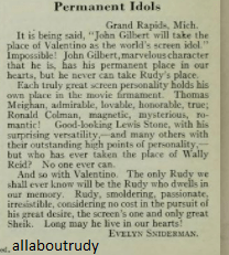 It has been almost a year now since Rudolph Valentino probably the greatest personality ever brought forth by the motion picture, has passed on and yet how rarely his name is recalled in that forgetful world we call Hollywood.